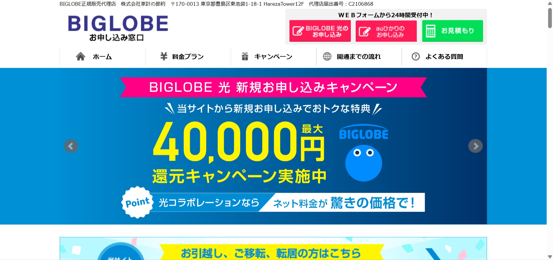 高速・安定したインターネット回線をお探しの方に朗報!いまなら「当サイト限定」で、BIGLOBE光に新規申し込みされた方に、最大40,000円のキャッシュバックキャンペーンを実施中です!