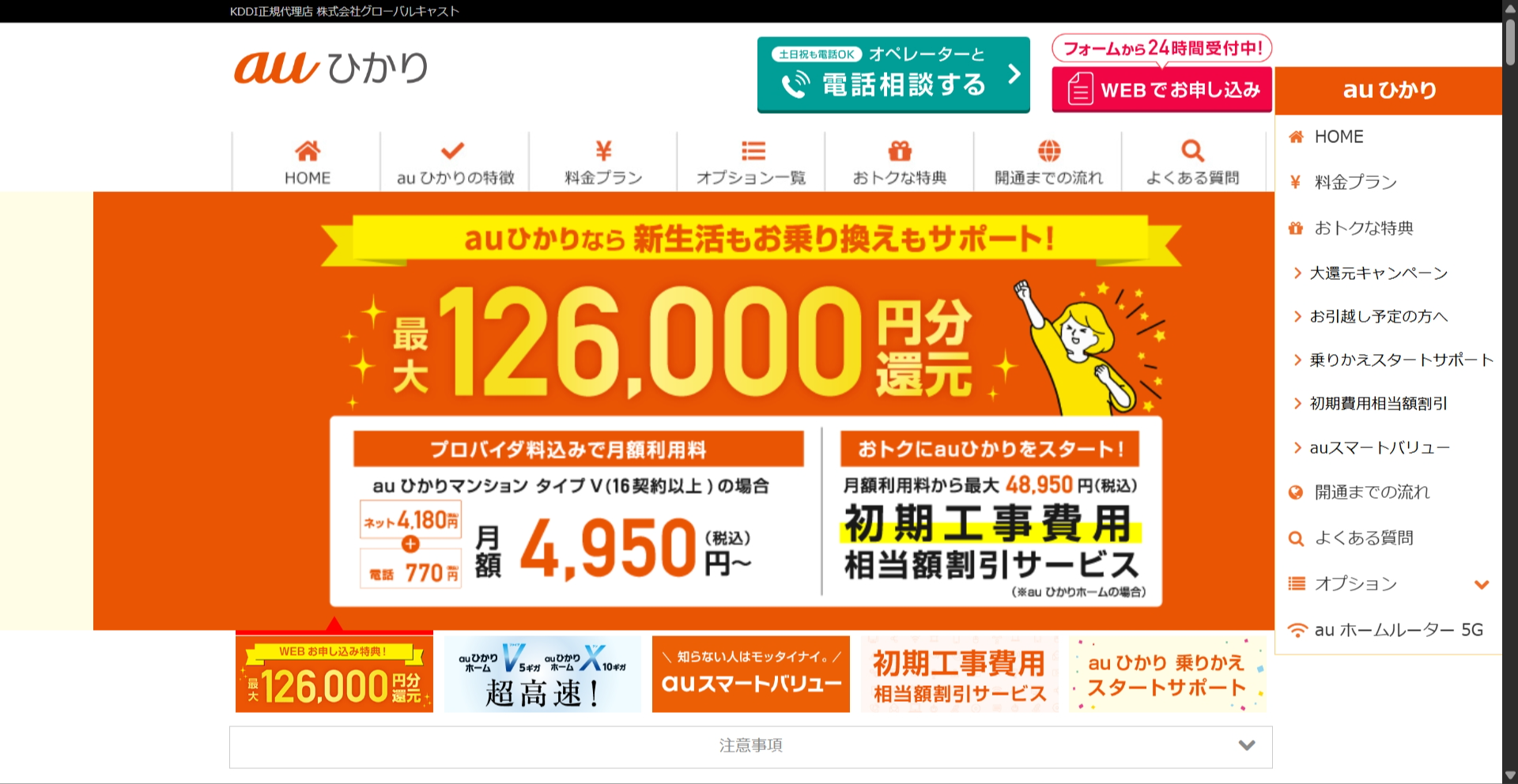【auひかり】初期工事費無料&豪華キャンペーン実施中!