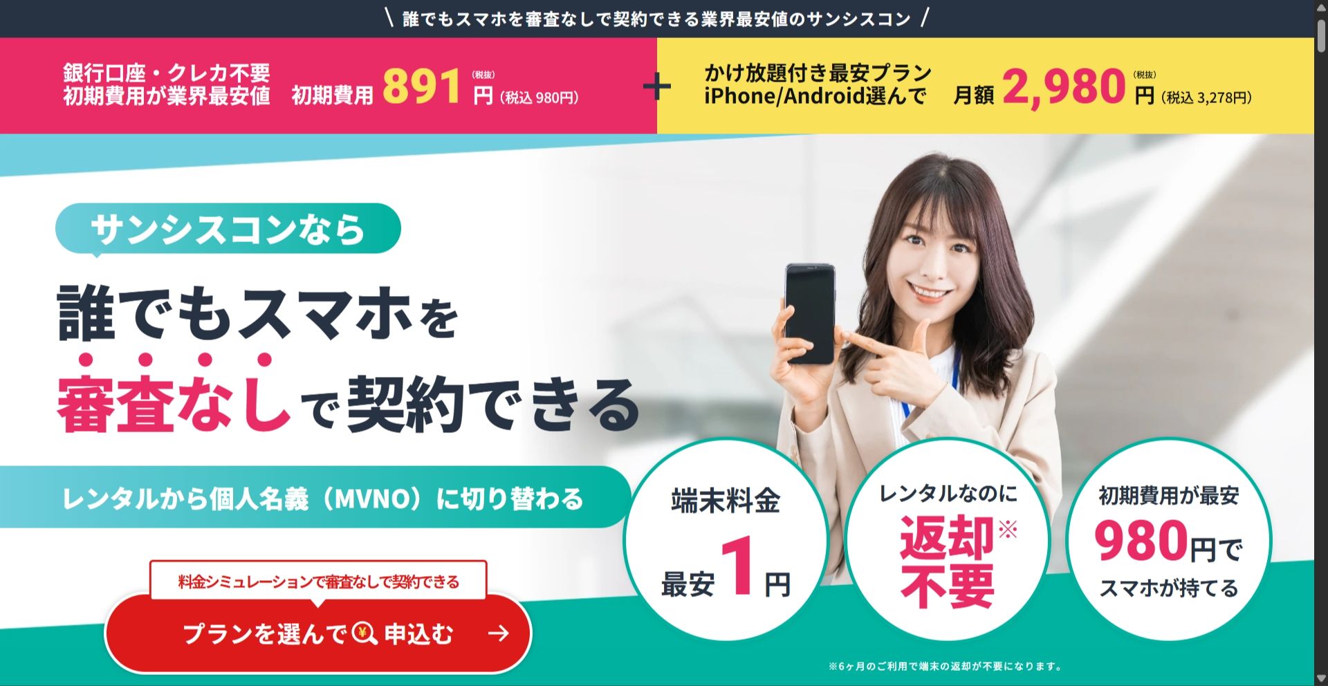 携帯契約でお困りの方に朗報。サンシスコンなら、審査不要でスマホが持てる!しかも初期費用はたったの1円。支払方法も柔軟で、あなたのライフスタイルにぴったりのスマホ契約が実現します。