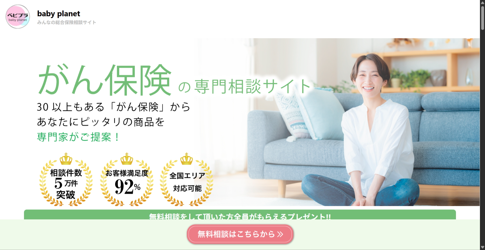 そんな方におすすめなのが、がん保険専門の相談サービス「baby planet(ベビープラネット)」です。