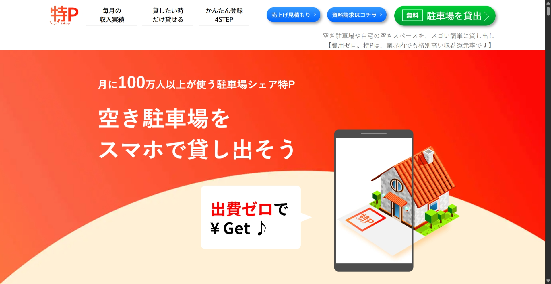 自宅の駐車場をスマホ1つで簡単貸し出し【特P】