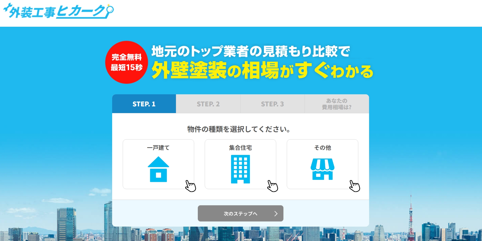 【外装工事ヒカーク】なら、条件に合った厳選業者を無料で一括比較。相見積もりで適正価格と納得の施工を実現します。