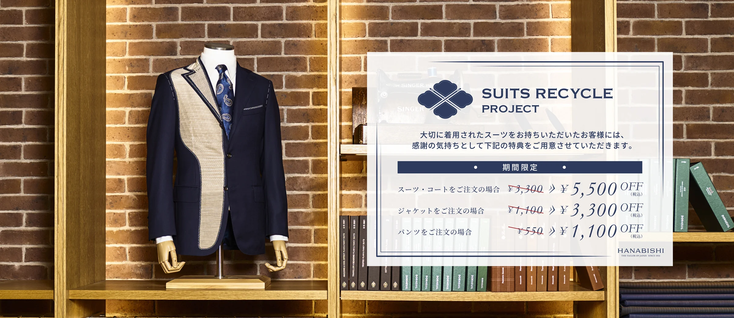 【HANABISHI】は1935年の創業以来、完全国内縫製にこだわったオーダースーツを提供。