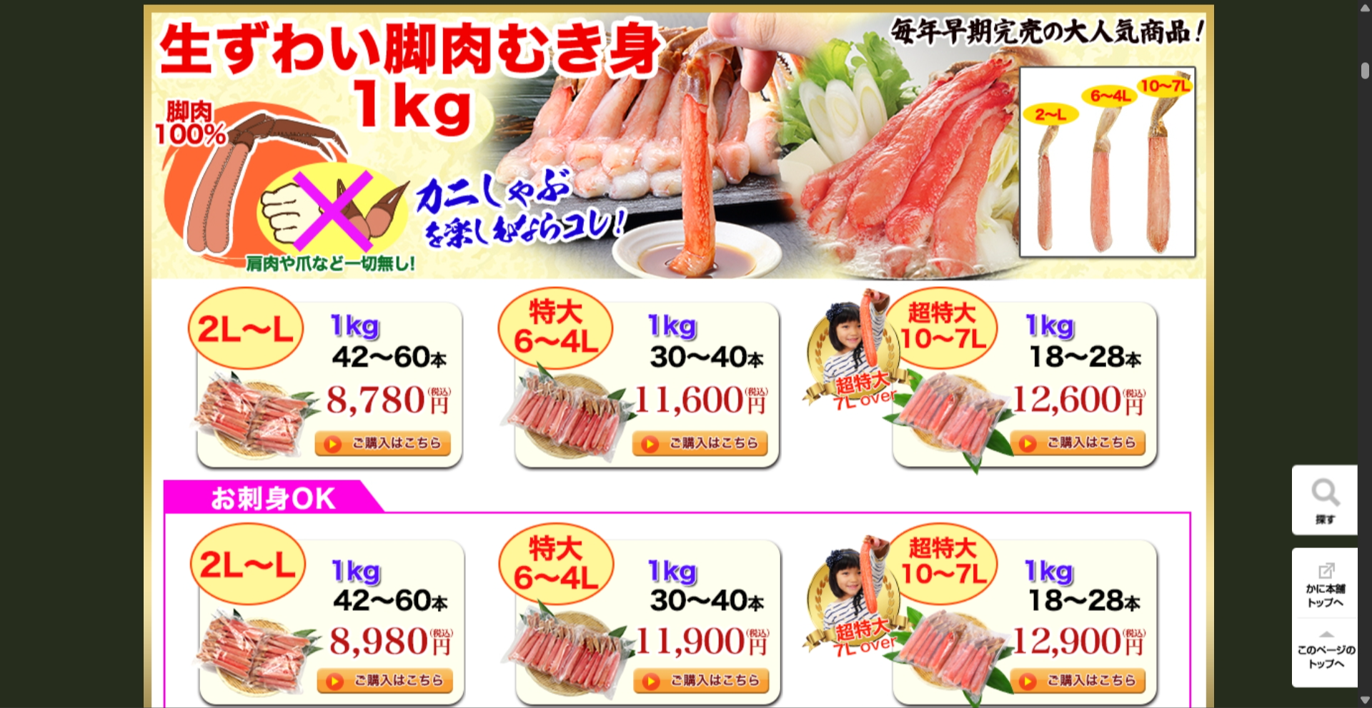 楽天・Yahoo!ショッピング・各通販ランキングで圧倒的な人気を誇るかに本舗(スカイネット)です。