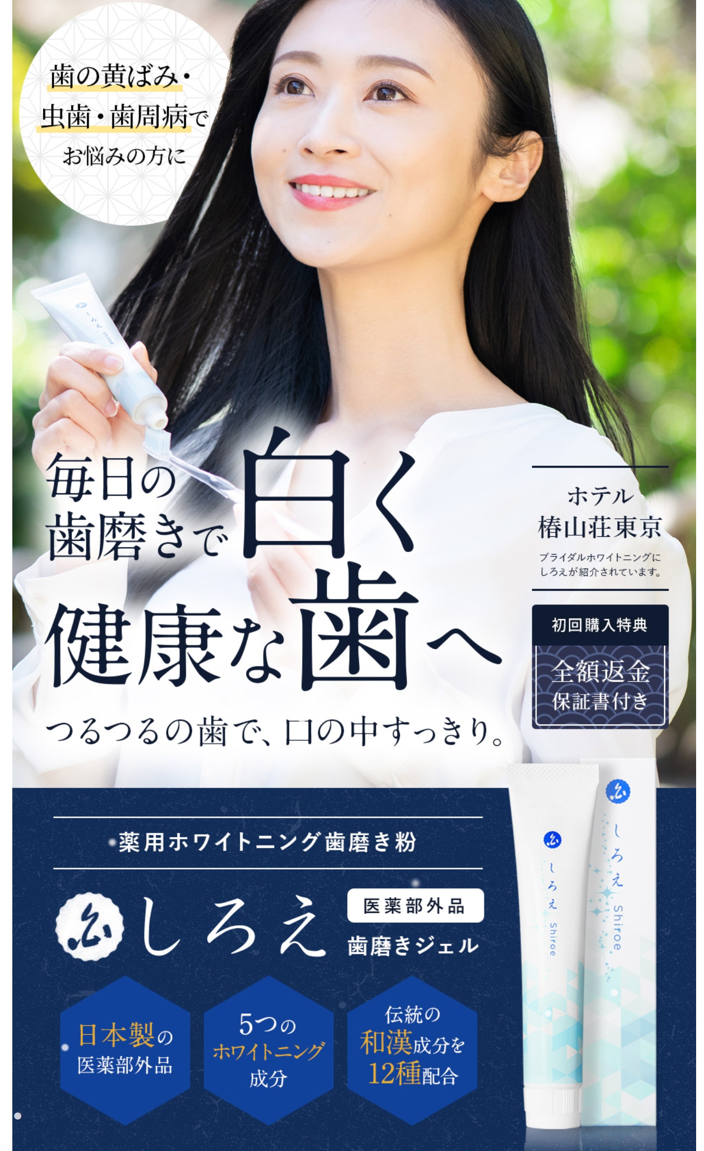 レビューで選ばれるホワイトニング歯磨き粉「しろえ」。